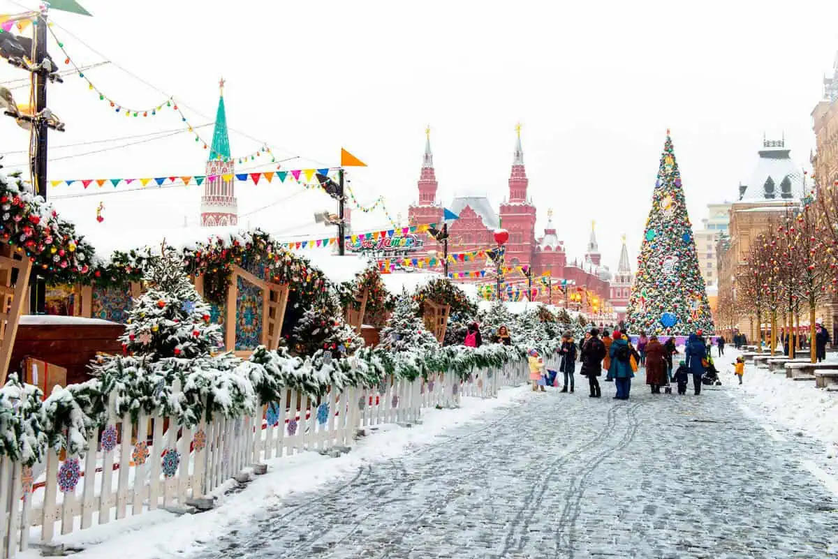 ساحات موسكو الكبرى: انغمس في أجواء العطلات الاحتفالية في ساحة الكرملين، حيث الفعاليات والمهرجانات التي تضفي طابعًا مميزًا ومبهجًا على المدينة.